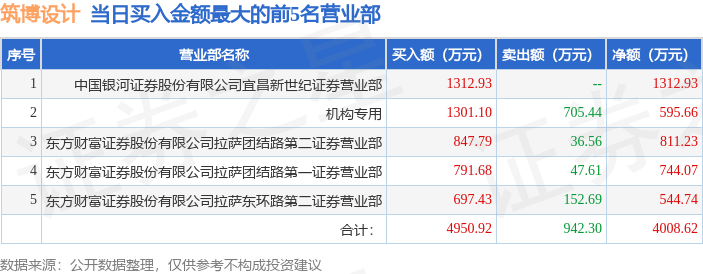 证券之星消息,沪深交易所2025年7月23日公布的交易公开信息显示炒股配资公司网,筑博设计(300564)因日涨幅达到15%的前5只证券登上龙虎榜。此次是近5个交易日内第2次上榜。
